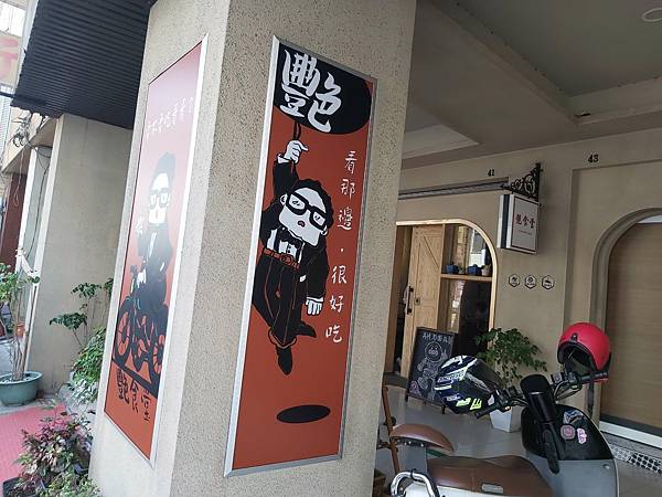 店內店外裝潢都不經意表現出一種特殊的喜感,像是門口廊柱上鮮明的「看那邊、很好吃」等漫畫式招牌就不是尋常能看到的風格。噗噗。