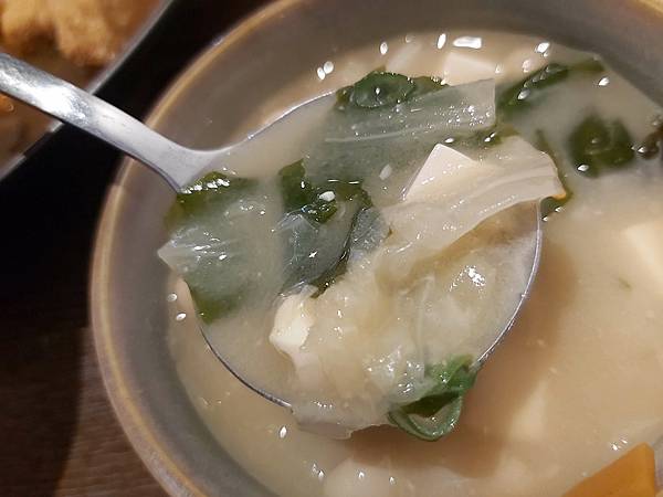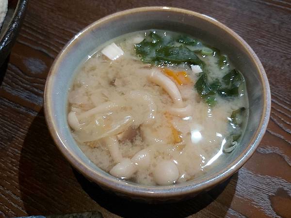 這碗「主廚例湯」的湯加上料實在不少、原先吃完餐點就算還沒有很飽,喝完這碗滋味濃郁的鮮蔬味噌湯也真的飽了起來。哈哈哈!