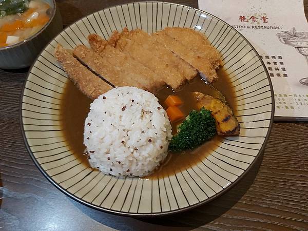 我在「艷食堂」官網有爬文先作功課,看到有網友盛讚「厚切炸豬排咖哩飯」好吃我也就仿效點了咖哩飯。