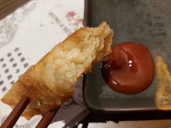 店員小姐在送上餐點時囑咐要趁熱吃,果然外皮香脆、滿滿內餡入口柔軟充滿馬鈴薯的甜香,沾醬又可以改變風味。真是不錯的餐後甜點,謝謝店家的招待!