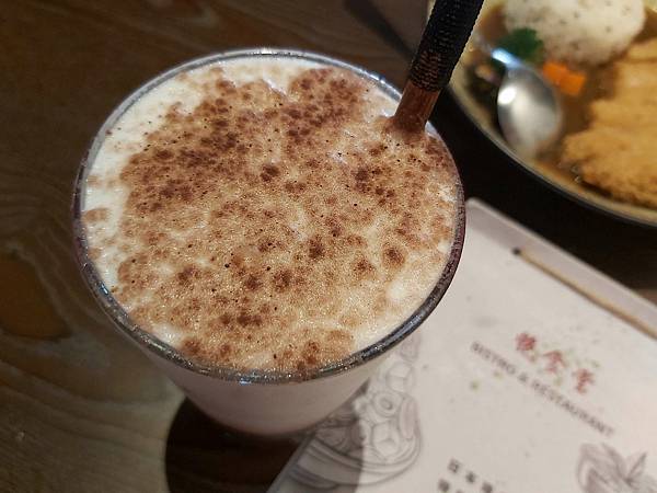 朋友讚說可可滋味濃郁、鮮奶也很新鮮,這一杯好營養美味的樣子。聊著聊著朋友還真喝光了。