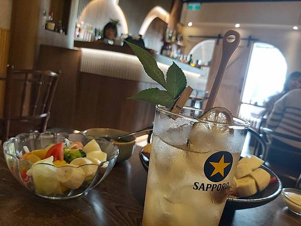 這杯冰涼的「精選梅酒」是有梅酒香的微甜調酒,喝著清爽順口、質感柔和就像三月的梅花般,慢慢才發散出溫柔的後勁。結果回程我在火車上就微醺著舒適到睡著了。呵呵。