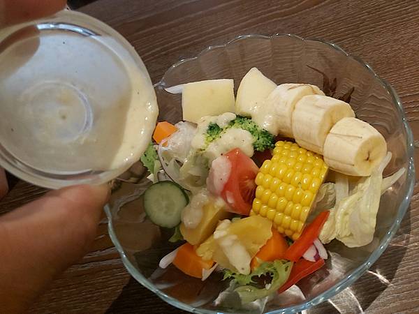 裡頭的季節蔬果都很新鮮,搭配我選的凱薩醬很好入口。於是我也把所有的蔬菜都嗑完了,嘿嘿。