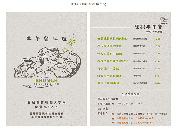 譬如這天我們希望能享用早午餐、不過入場的時間已經快下午一點鐘了,因此店家貼心地提醒我們早午餐供應時間是 ᴀᴍ 10:00 - ᴘᴍ 14:00。要留意服務時間。