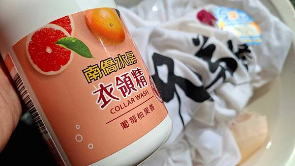 同事問我說高雄太陽那麼大、天氣這麼熱,你為什麼還是都穿深色衣物、讓人感覺更熱了!我說那當然是因為穿深色衣服顯瘦嘛?另一個原因是淡色衣物容易穿髒,尤其衣領處的髒汙特別難洗、越洗越黃很煩!不過我媽最近新入手了「南僑水晶」六合一酵素衣領精「清新檸檬」與「葡萄柚果香」各一罐,我試洗幾次覺得滿乾淨、新近我有比較常穿淡色服裝。