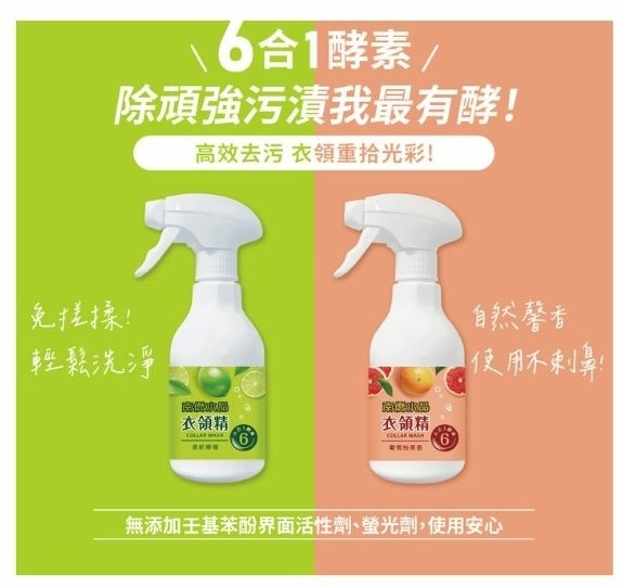 基本的潔淨配方不變,目前共推出「清新檸檬」和「葡萄柚果香」兩種氣味衣領精。因為不知道選哪一罐好所以我媽兩瓶都入手了。噗噗。