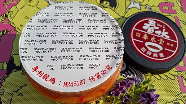 「春水招牌辣醬泡菜」以罐裝的方式包裝、單罐 400g,使用專利密封膜保持新鮮,揭開後就有一股蒜味泡菜的香氣瀰漫而出。