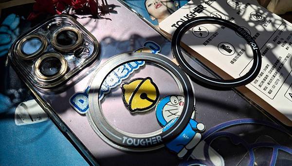 第一個女同事慣用的磁吸保護殼是哆拉 A 夢的圖案設計、所以顯然是貼在裡頭比較美觀。呵呵。