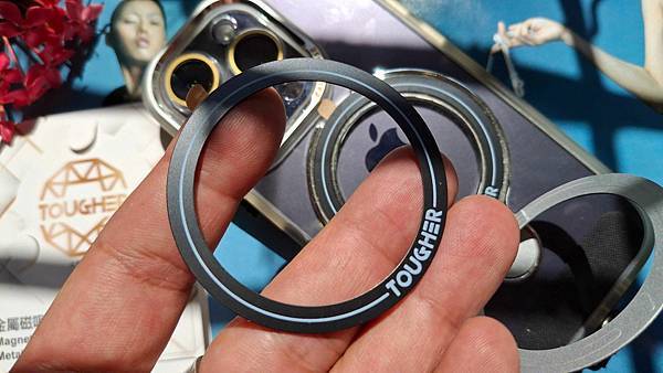 「TOUGHER」金屬磁吸環本身極度輕薄,拿在手上幾乎不感覺重量。